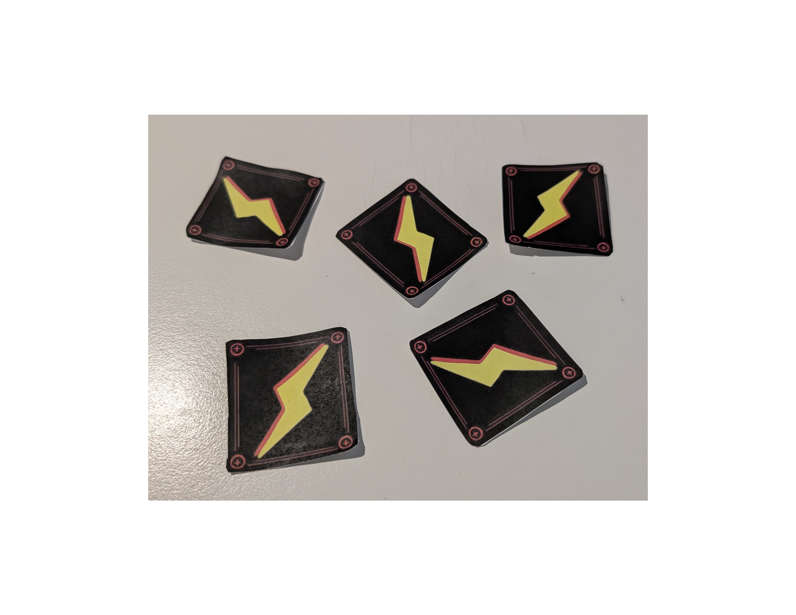 - Cut out cards and spark tokens.